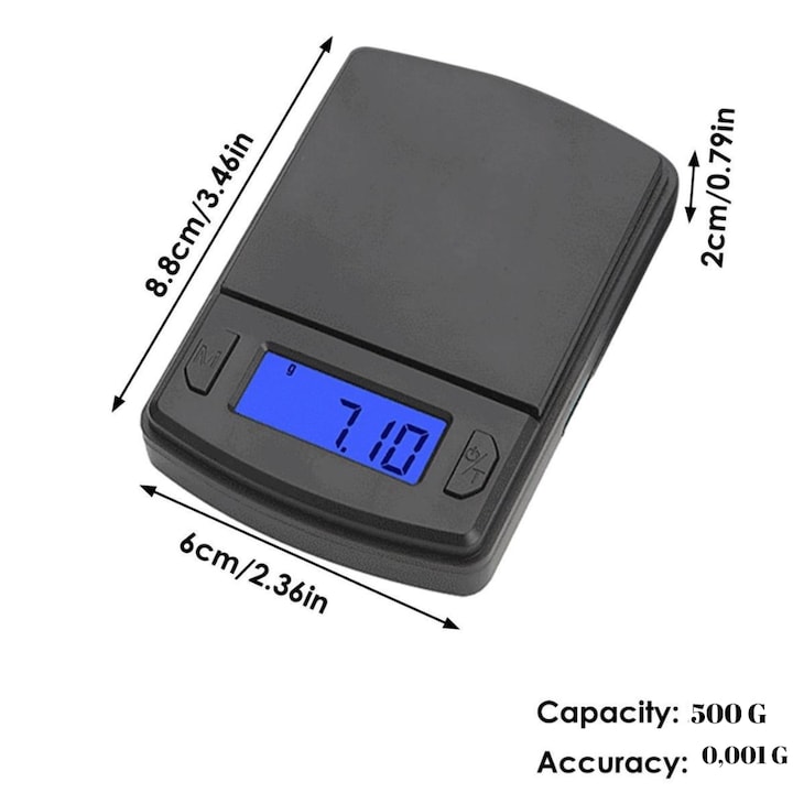 Capabilitatea de a cantari :de la 0,1 g pana la 0,500 g face ca acest cantar sa fie ideal pentru a fi utilizat in bijuterie si in bucataria moleculara, unde precizia este esentiala