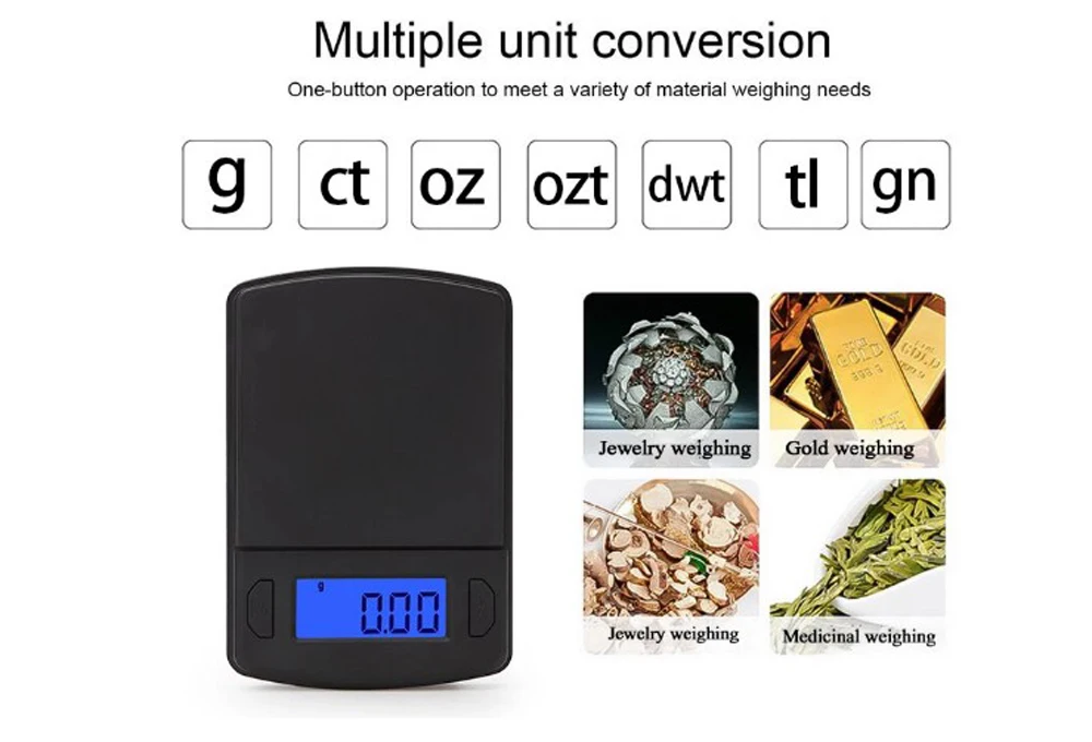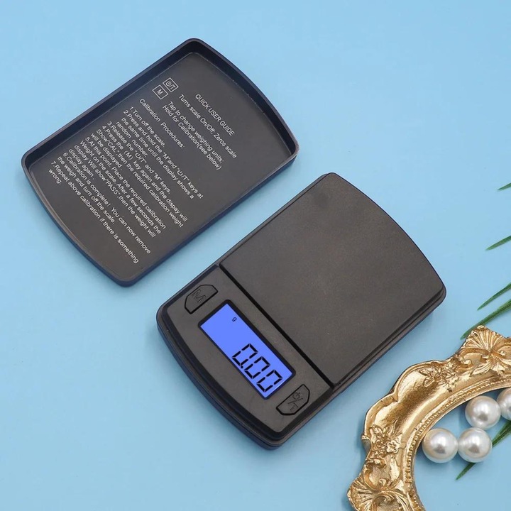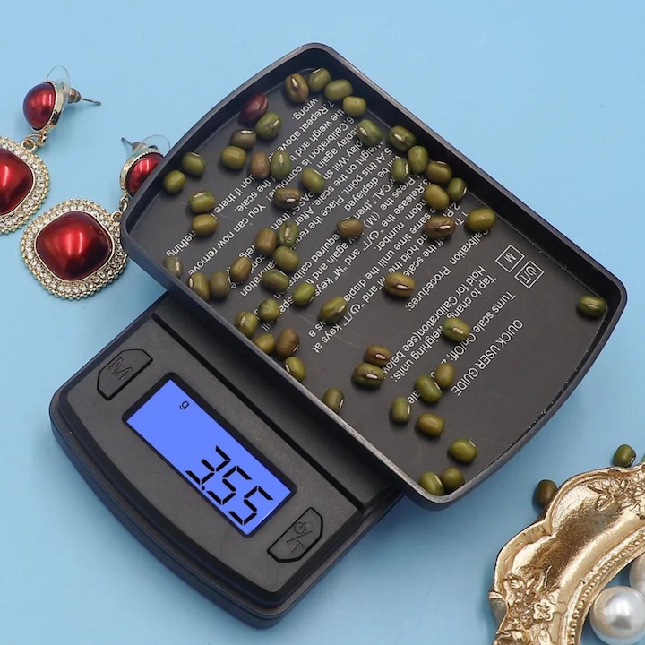 Mini Cantar De Precizie Pentru Bijuterii, Bucatarie, Cu Afisaj Digital, Capacitate De La 0,1 G Pana La 500 G , Din Plastic, Negru.