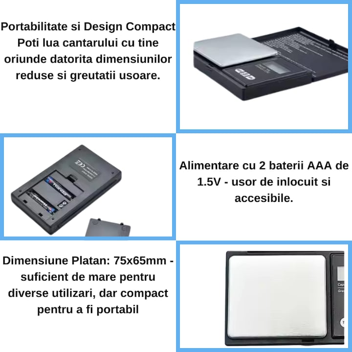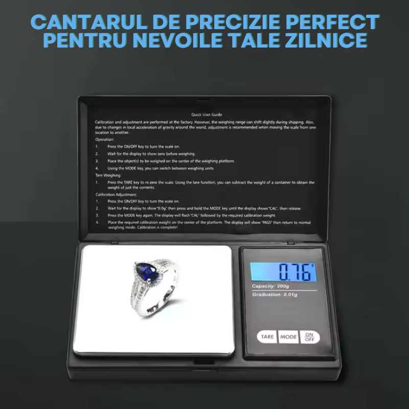- Versatilitate: Multiple unitati de masura pentru orice nevoie, fie ca masori bijuterii, ingrediente de bucatarie sau alte obiecte mici.