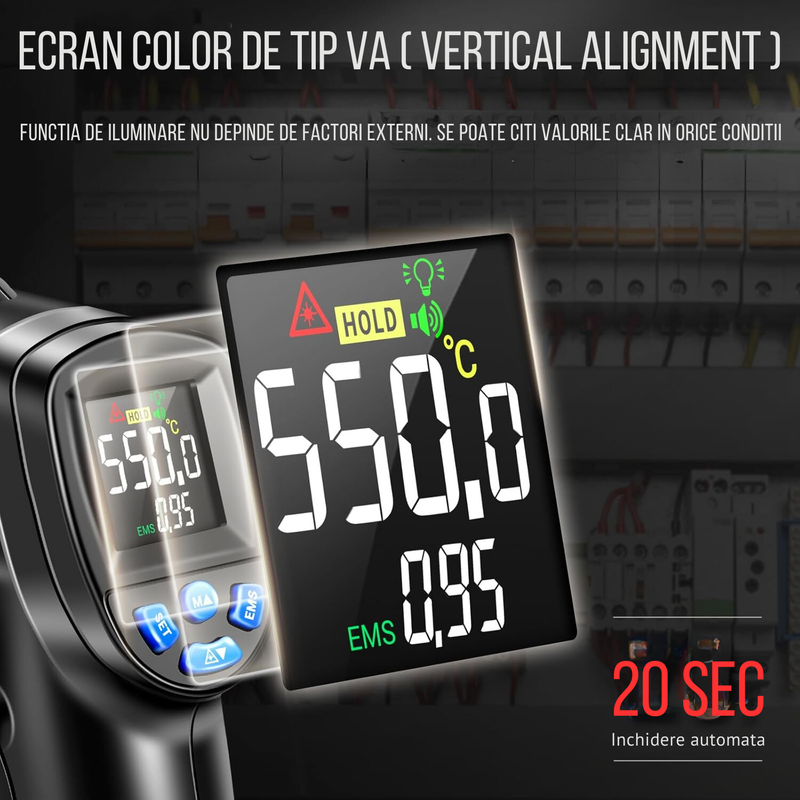 • Interval de Masurare: -50℃~550℃ / -58℉~1022℉ – Gama larga pentru diverse aplicatii.