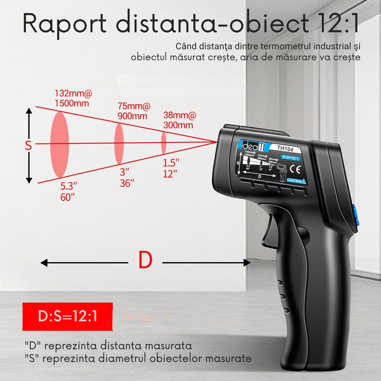• Raport Distanta-Obiect: 12:1 – Permite masurarea de la o distanta sigura.