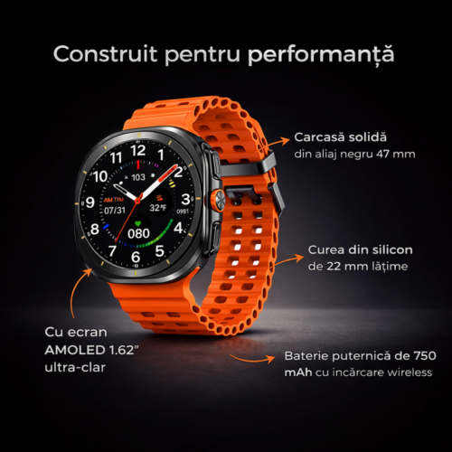 Smartwatch-ul dispune de 16GB memorie interna si 2GB RAM, permitand instalarea si rularea rapida a aplicatiilor preferate: WhatsApp, Facebook, Instagram, TikTok si altele. Aceasta combinatie asigura o experienta fluida si performanta ridicata in utilizarea zilnica.