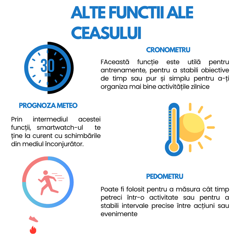 | Functii | Alarma Calendar Apel SOS Vremea Apeluri primite Ageda telefonica Activitate fitness Afisare vreme |