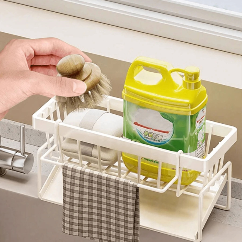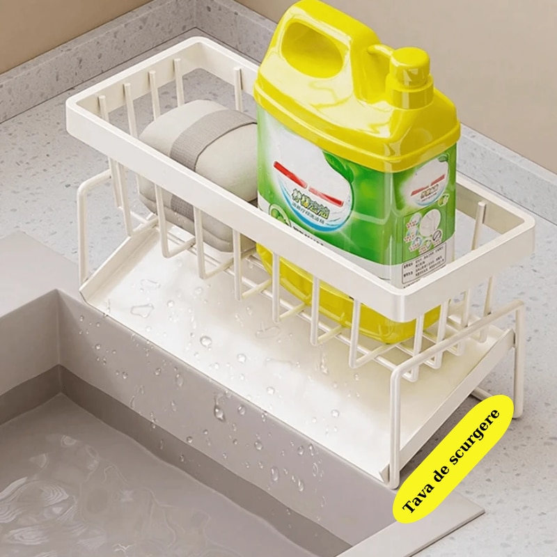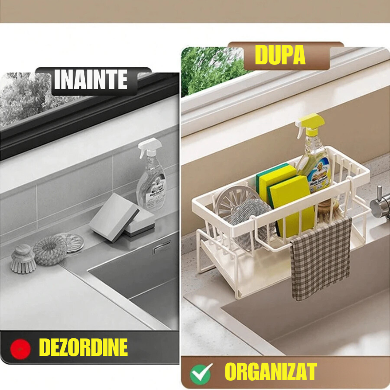 - Organizare eficienta: Cu spatiu dedicat pentru bureti, lavete si sticla de detergent, suportul te ajuta sa iti pastrezi accesoriile de curatenie bine organizate si accesibile.